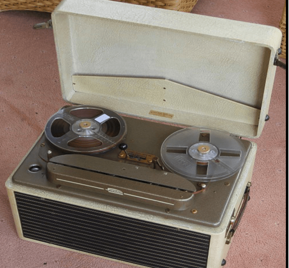 Now you might be tempted to dismiss my recollection as just that – a faded memory that has become embellished with each telling.  But in this you would be wrong because there are tapes!  My dad, you see, was an audiophile and sort of amateur archivist who selectively recorded people and events.  He owned a good quality reel-to-reel tape recorder, which probably means nothing for those of you who are under 50.  Reel-to-reel was a technology that preceded eight-track recorders and cassettes by a couple of decades.  Rather than the recording tape being self-contained within a single cassette, it moved between two separate reels.  Suffice it to say, the tape recorder was a rather large affair weighing perhaps fifteen pounds or so and about the size of a small suitcase.  These days with smart phones, it is a simple matter to secretly record a conversation or event, but stealth was not so simple in the days of reel-to-reel.